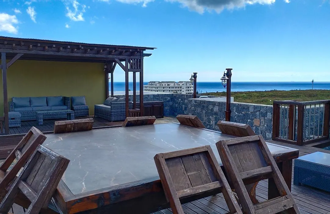 The spacious 110 m² Deluxe Ocean View Penthouse With Private Roof Deck Apartment offers views of the city and a location approximately 10 minutes' drive from Wolmar Public Beach. The 2-bedroom apartment has a sunny patio which offers views of the sea.